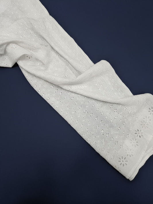 White Cotton Dyeable Cutwork Flower Pattern Chikankari Schiffli Embroidered Fabric