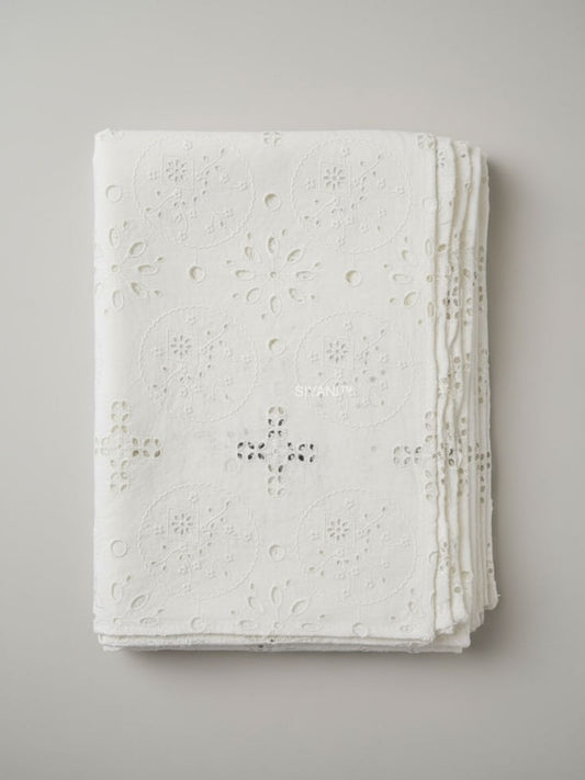 Kora Cotton Dyeable Cutwork Flower Bail Pattern Chikankari Embroidered Fabric