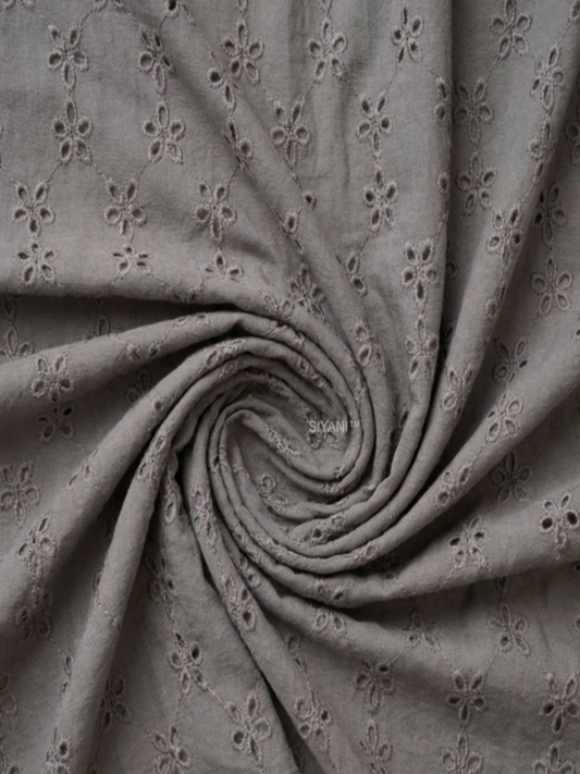 Grey flower pattern schiffli embroidered fabric