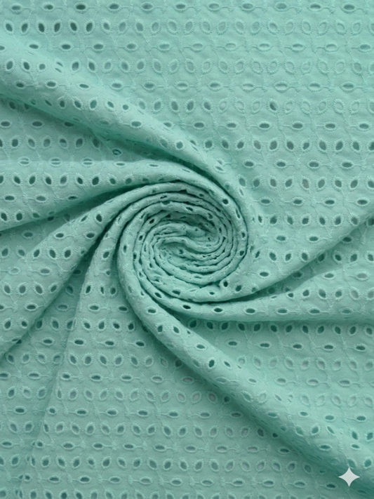 Sea green six hole schiffli embroidered fabric