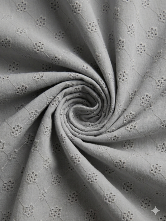 Gray five hole pentagon schiffli fabric