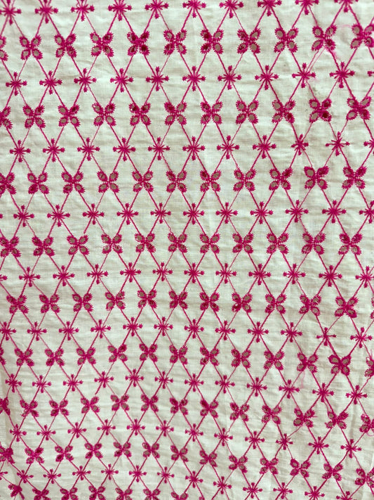 Pink Floral Threadwork Schiffli embroidery on cotton cambric Fabric