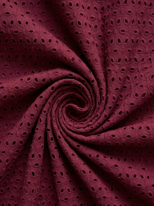 Maroon six hole schiffli embroidered fabric