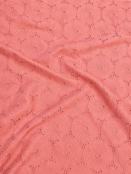 Peach Schiffli Embroidered Soft Cotton Fabric