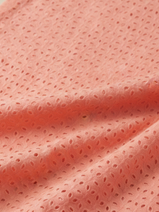 Coral pink six hole schiffli embroidered fabric