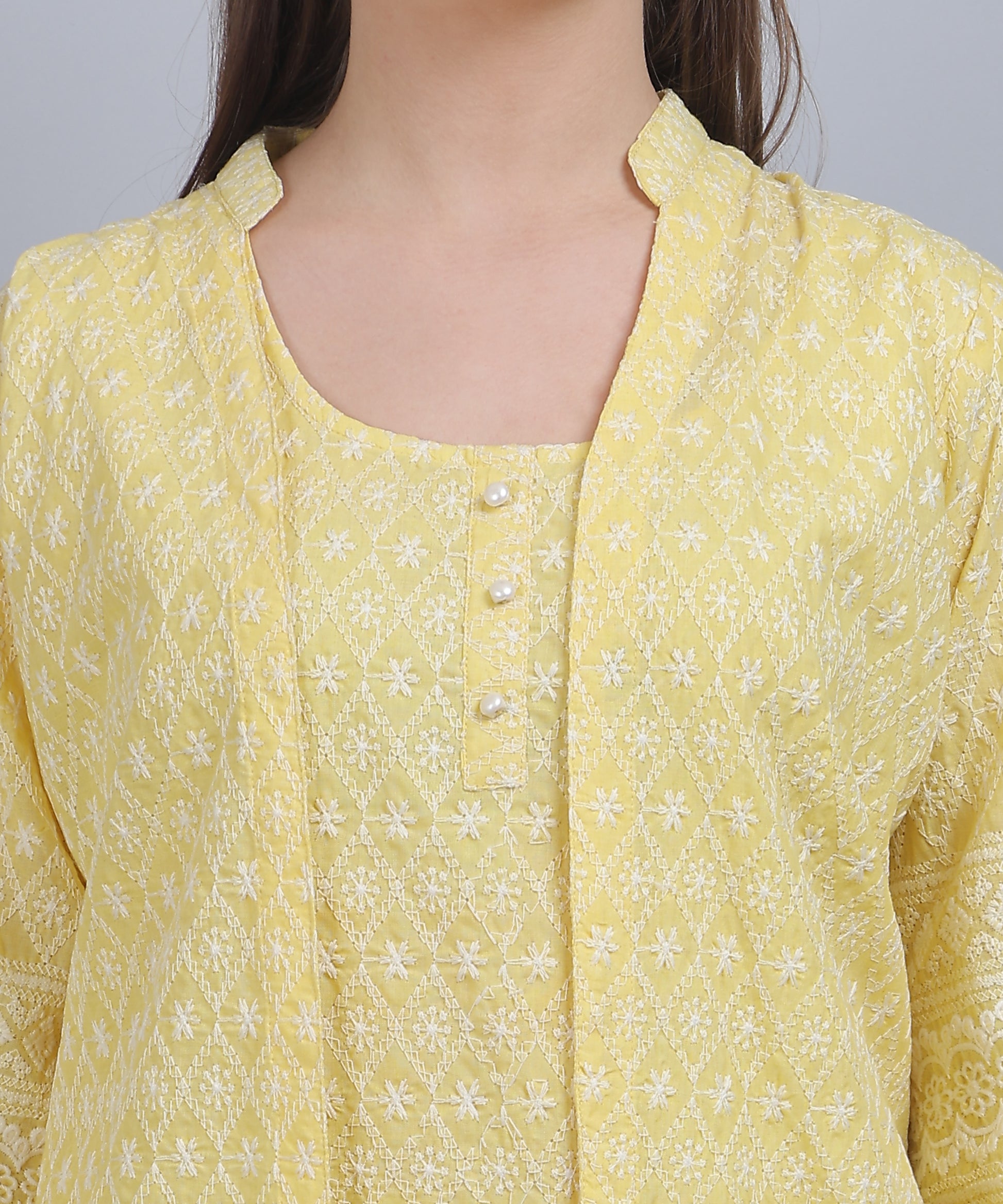 Lemon Yellow Schiffli Embroidered Co Ord set